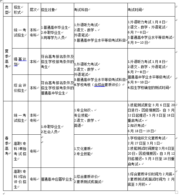 1.2022年山东省普通高等学校招生考试分为哪些类型?